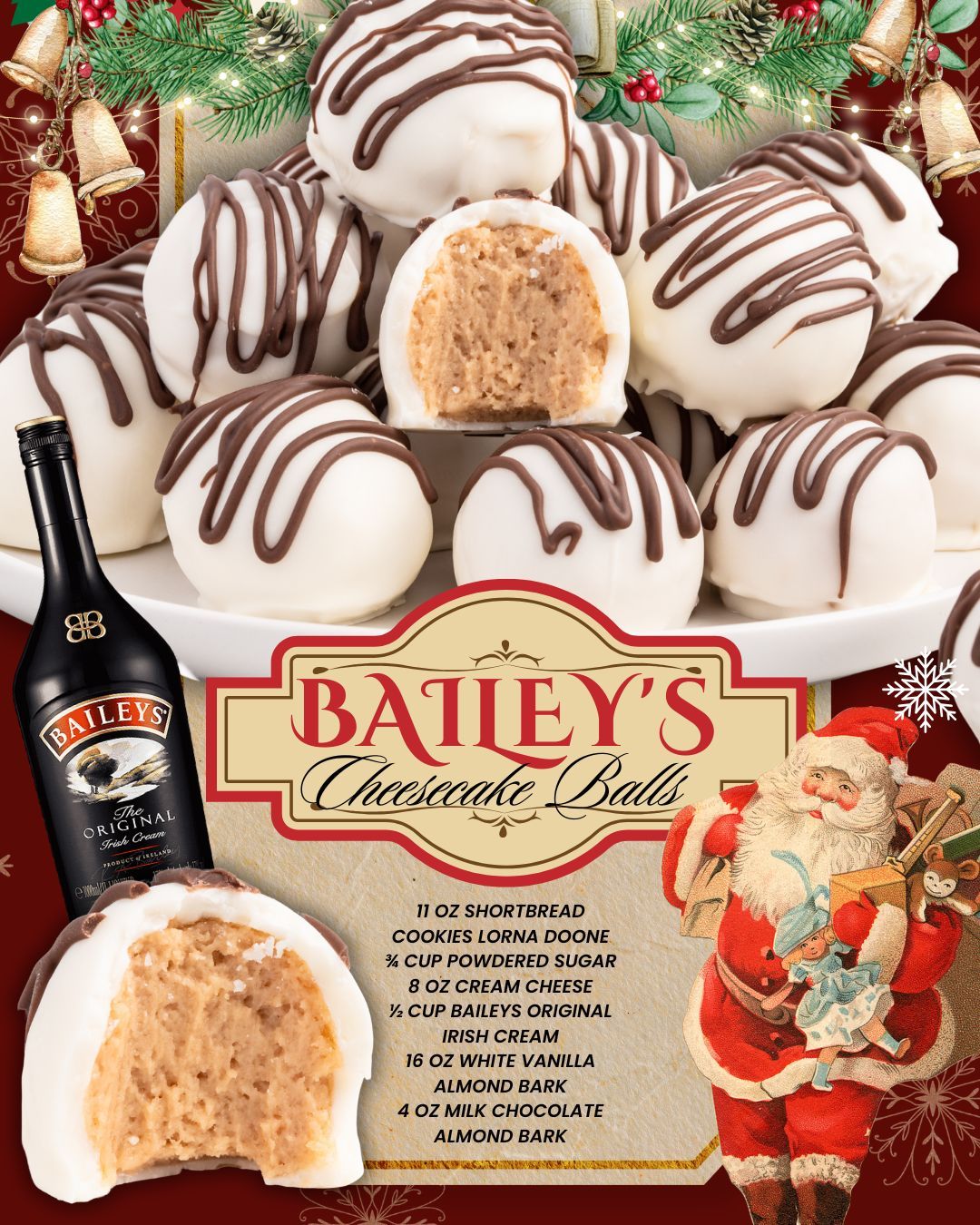 These Bailey’s Cheesecake Balls are rich, creamy, and packed with the indulgent flavor of Bailey’s Irish Cream. With a buttery shortbread base, smooth cream cheese, and a coating of white and milk chocolate, they’re the perfect bite-sized dessert for holiday parties, gatherings, or gifting to friends and family.