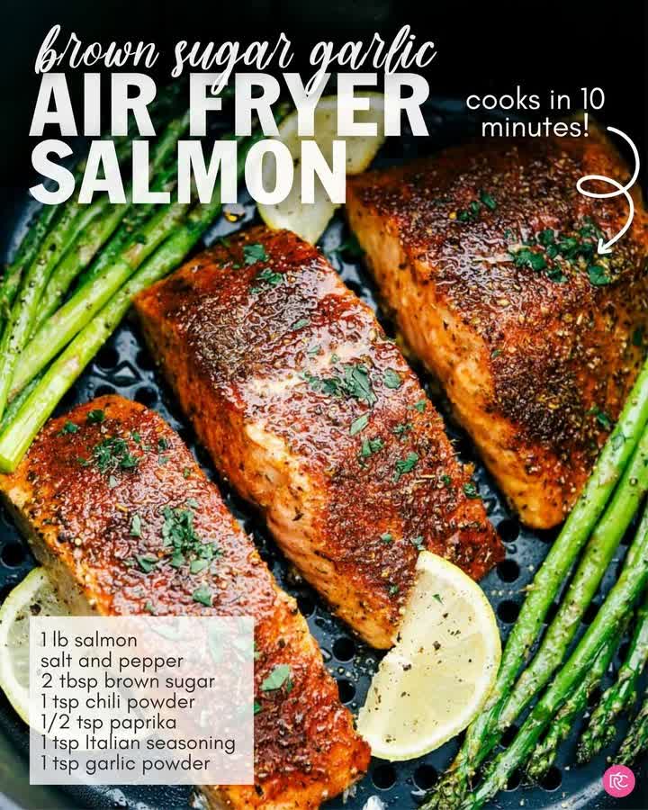 The combination of brown sugar, garlic, chili powder, and Italian seasoning creates a rich glaze that caramelizes beautifully in the air fryer, giving the salmon a crispy, flavorful crust while keeping the inside tender and moist.