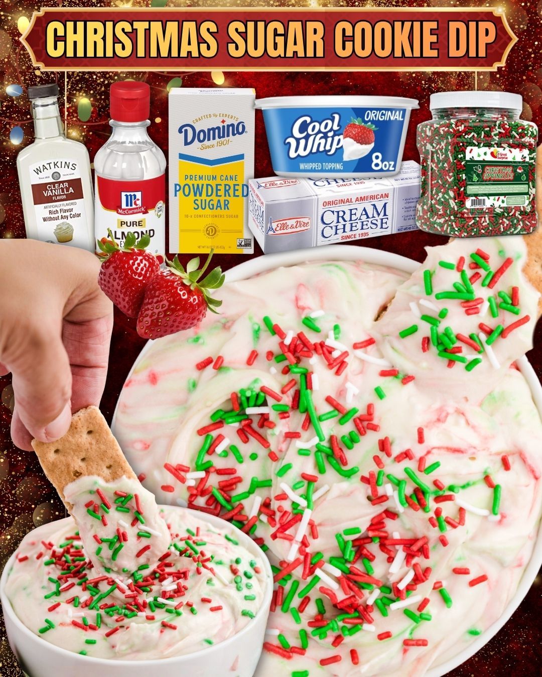 • 2.3 oz Holiday Jimmies Sprinkles – Festive and colorful sprinkles to add a fun holiday touch to the dip.