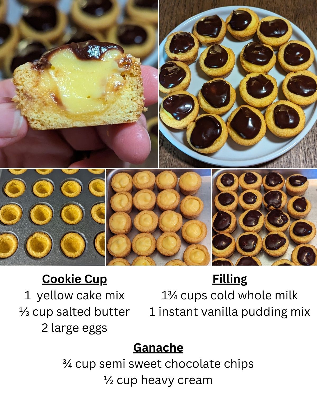 Boston Cream Pie Cookie Cups are made in three main components: the cookie base, the creamy filling, and the chocolate topping. Each ingredient contributes to the balance of flavor and texture that defines this dessert.