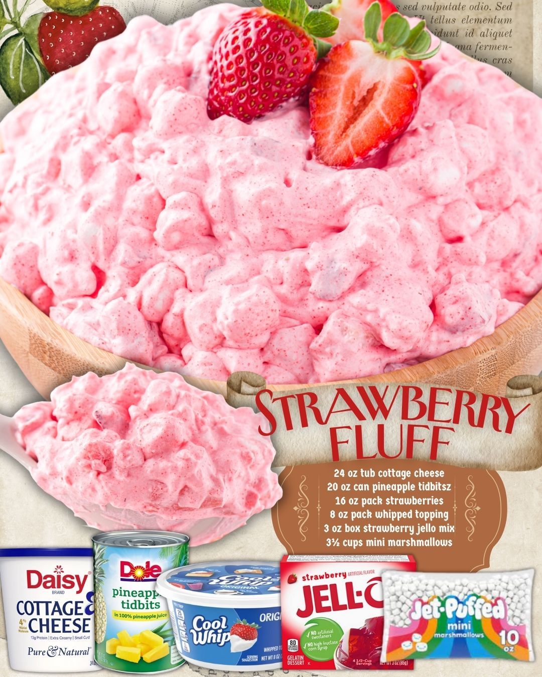 To prepare this strawberry fluff salad, you’ll need the following ingredients: