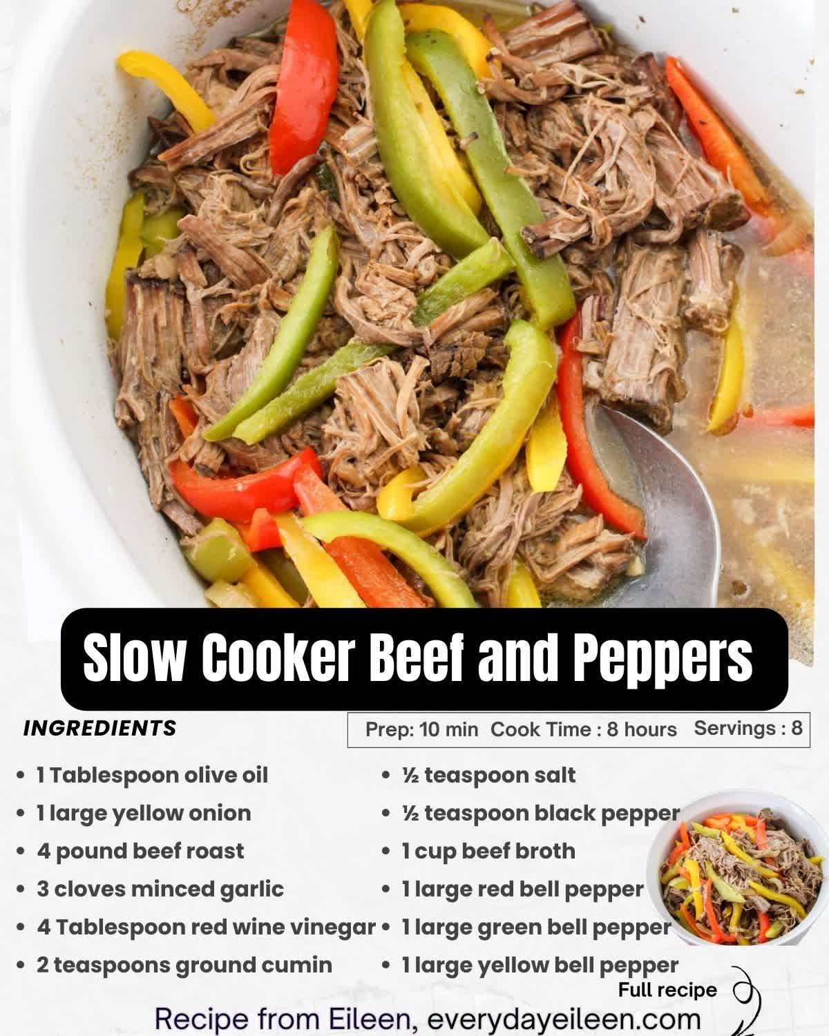 Easy Slow Cooker Beef and Peppers is a hearty, savory dish that combines tender, juicy beef with sweet, colorful bell peppers and onions in a flavorful sauce.