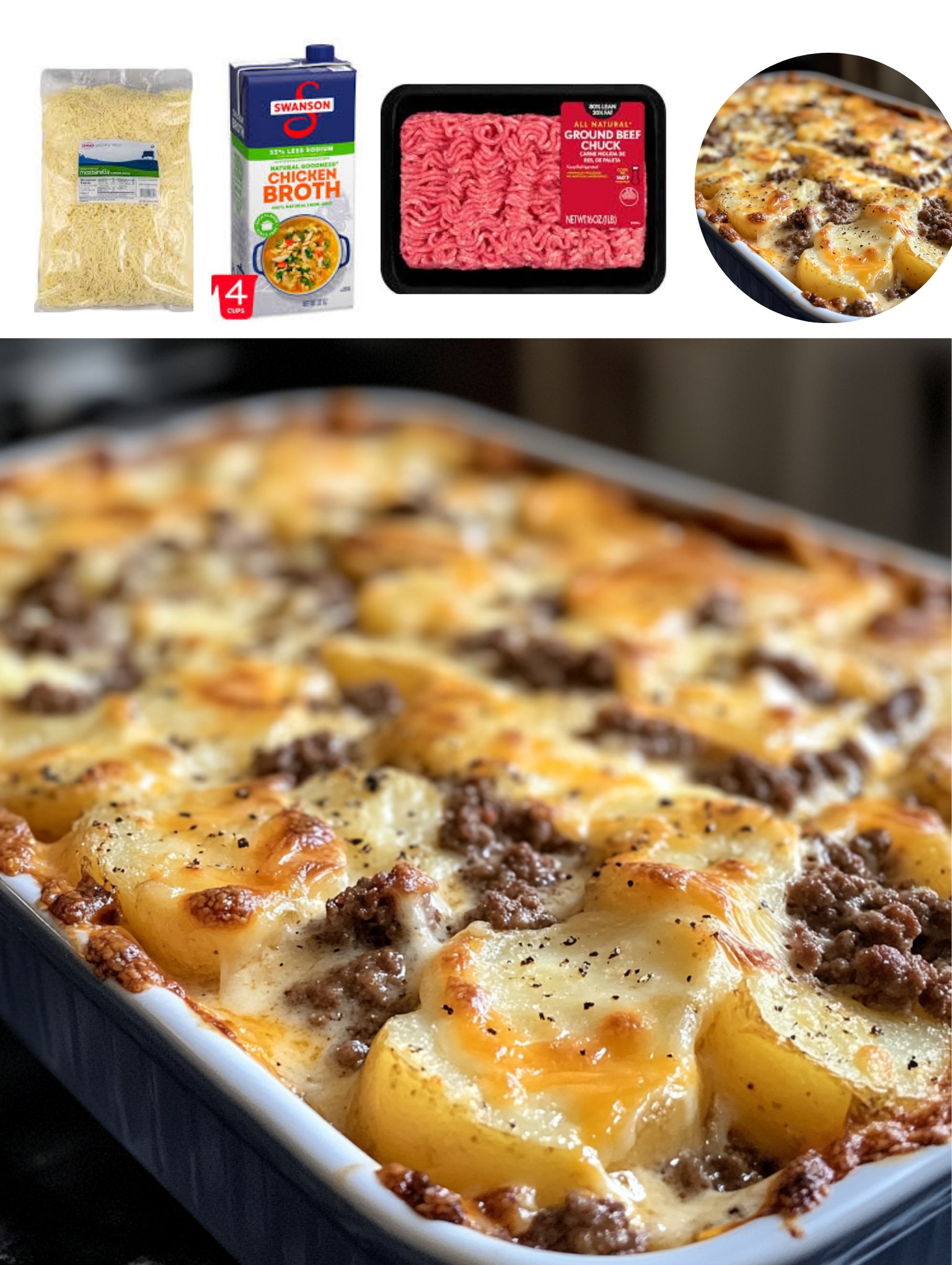 This recipe is inspired by traditional scalloped potatoes and classic hamburger casseroles, blending the two into one complete, hearty dish. The potatoes become soft and creamy as they bake, absorbing flavor from the seasoned beef and cheese. Meanwhile, the cheese melts into every layer, creating a comforting texture that holds the casserole together beautifully.