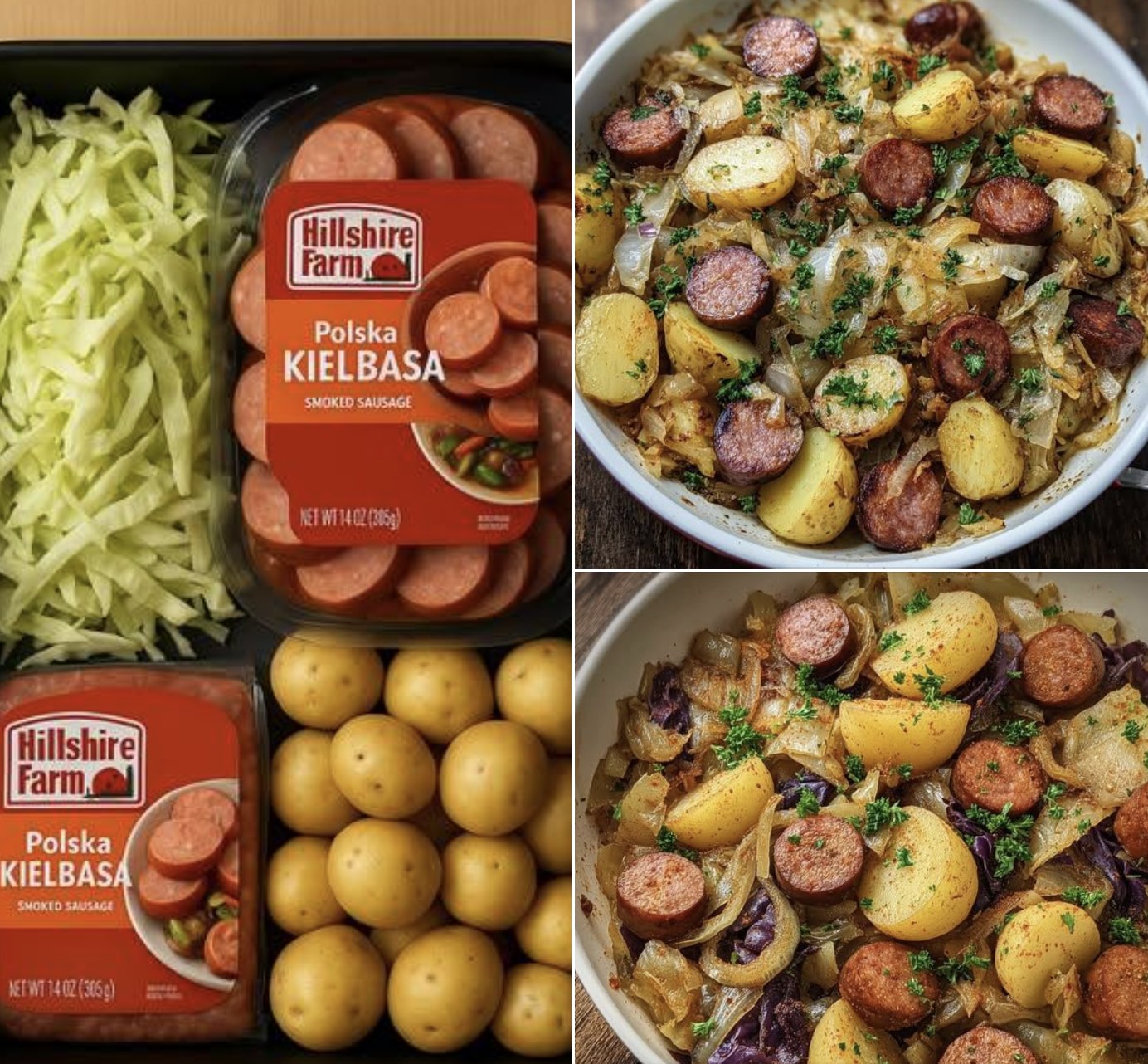 This dish shines because of its balance. Tender potatoes provide substance, kielbasa brings smoky richness, and cabbage adds both texture and subtle sweetness. Cooked together in one pan, the ingredients meld into a comforting, savory meal that feels both old-fashioned and effortlessly modern.