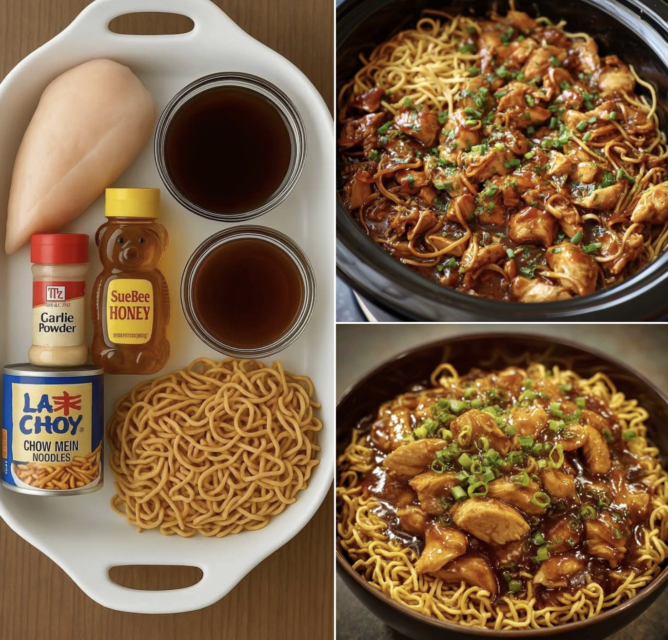 Slow Cooker Honey Garlic Chicken & Noodles is a simple, comforting meal that combines tender, juicy chicken with a sweet and savory honey garlic sauce, all tossed with soft egg noodles. Using a slow cooker allows the flavors to meld perfectly while keeping the chicken moist and flavorful. Finished with crunchy chow mein noodles on top, this dish is both comforting and fun to eat. Perfect for busy weeknights or cozy dinners, itβs a family favorite that requires minimal prep.